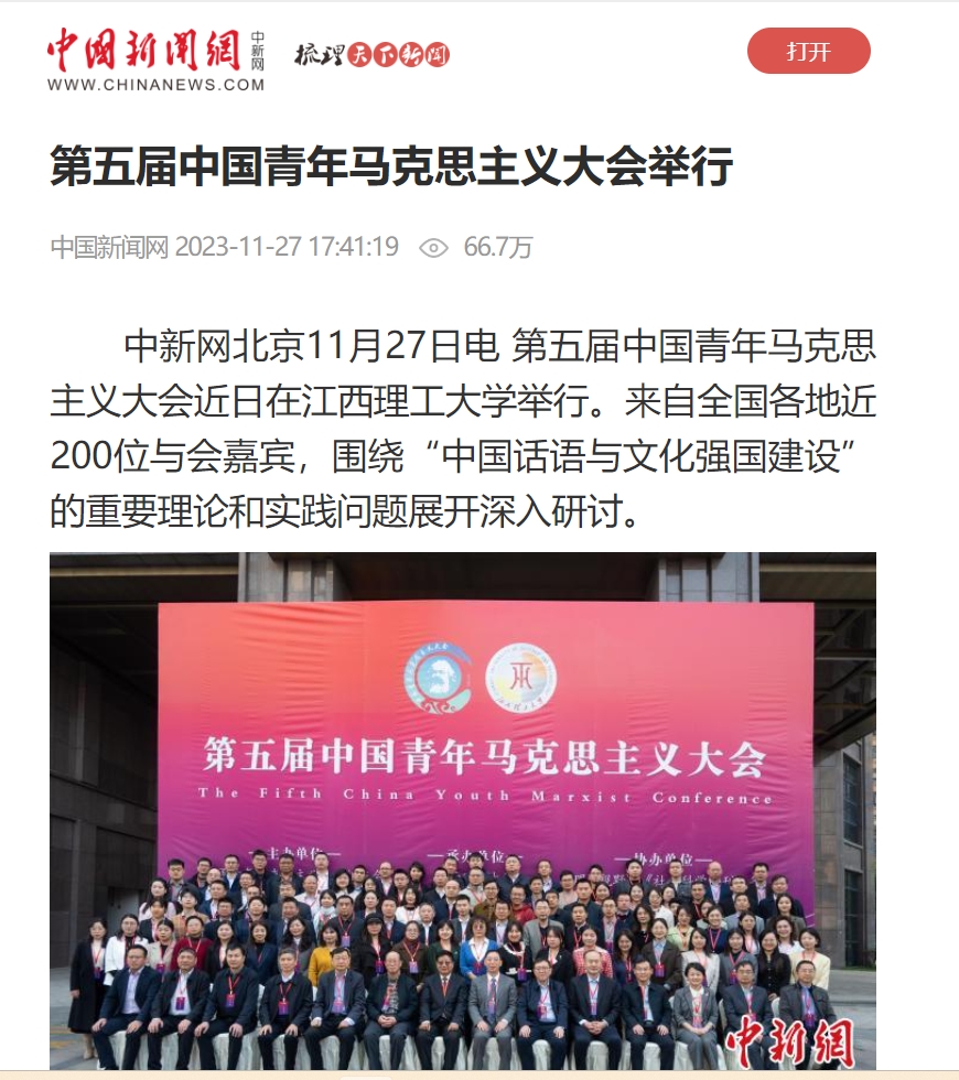 中新网北京11月27日电 第五届中国青年马克思主义大会近日在江西理工大学举行。来自全国各地近200位与会嘉宾,围绕“中国话语与文化强国建设”的重要理论和实践问题展开深入研讨。