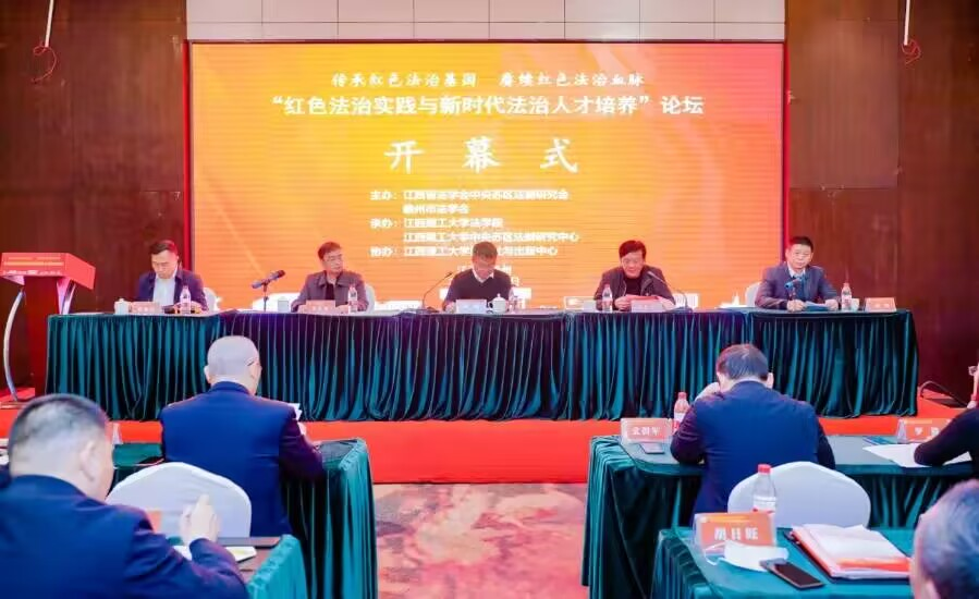 江西省法学会专职副会长欧璐出席会议并讲话,赣州市法学会会长邓忠平,江西理工大学党委常委、副校长黄志繁分别致辞。论坛吸引了来自重庆大学、西北大学、龙岩学院、南昌大学、江西财经大学等省内外20余所高校、省内10余家县市法学会等100多名法学法律工作者参加。论坛围绕红色法治实践、创新基层社会治理工作内容,交流经验,分享成果。