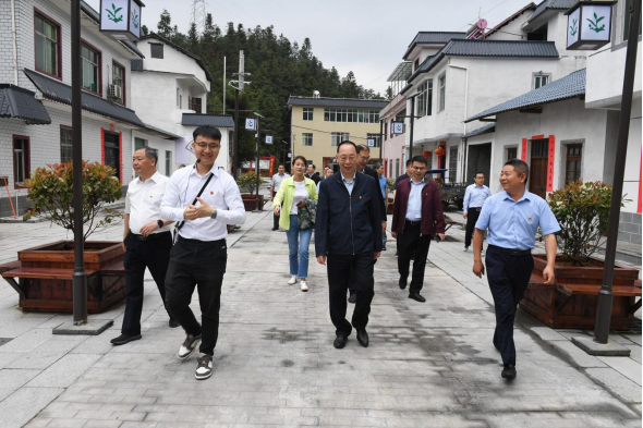 江西理工大学党委书记杨斌在兴国县贺堂村开展学习调研。