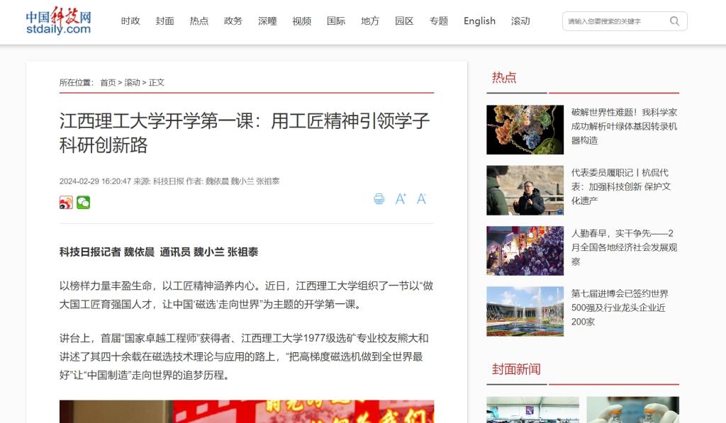以榜样力量丰盈生命,以工匠精神涵养内心。近日,江西理工大学组织了一节以“做大国工匠育强国人才,让中国‘磁选’走向世界”为主题的开学第一课。