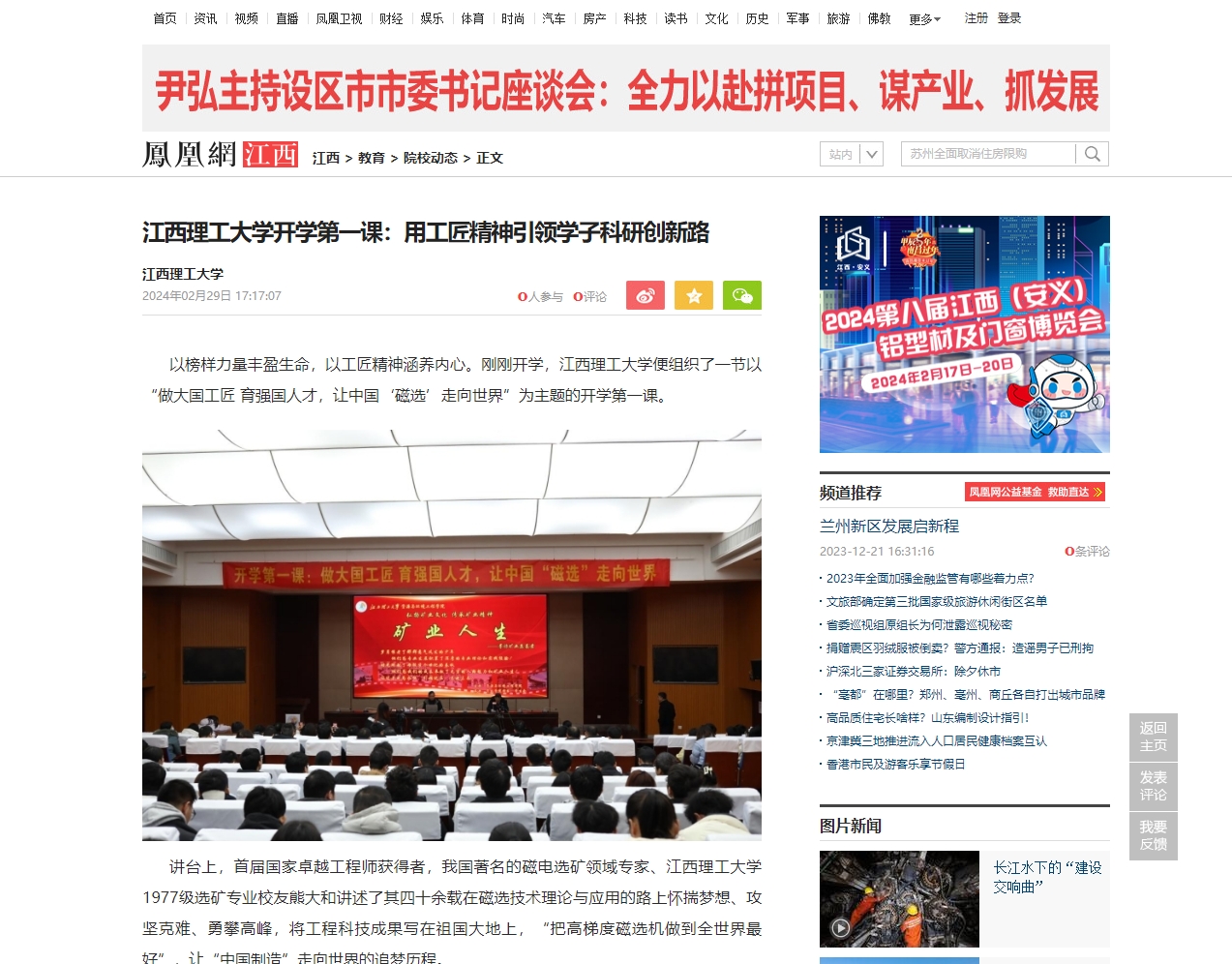 以榜样力量丰盈生命,以工匠精神涵养内心。刚刚开学,江西理工大学便组织了一节以“做大国工匠 育强国人才,让中国‘磁选’走向世界”为主题的开学第一课。
