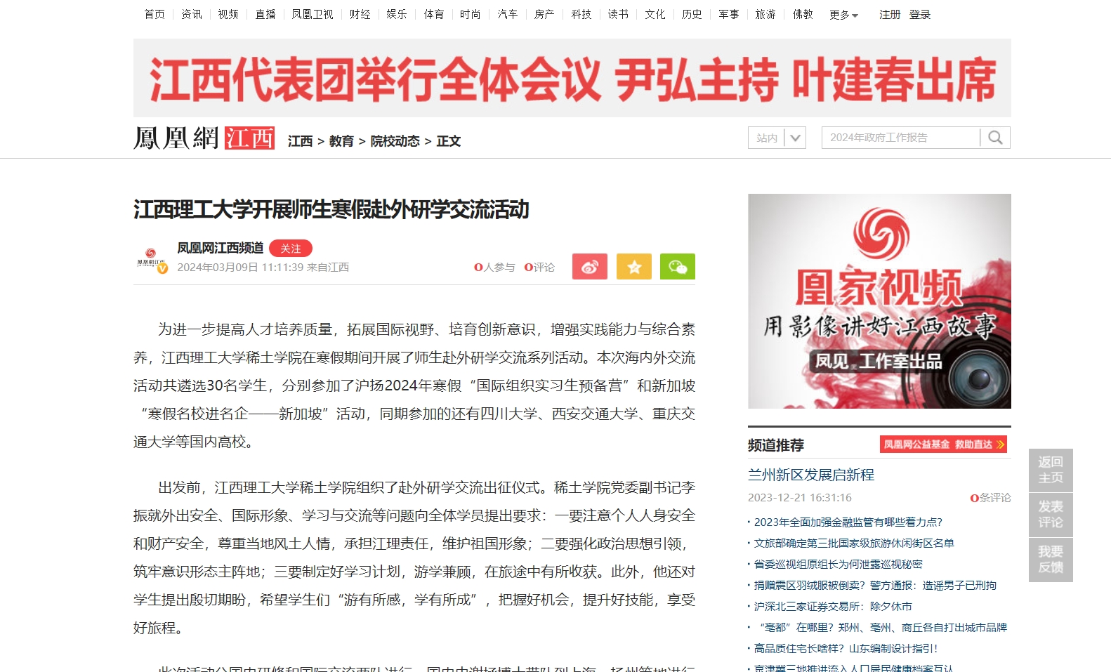 为进一步提高人才培养质量,拓展国际视野、培育创新意识,增强实践能力与综合素养,江西理工大学稀土学院在寒假期间开展了师生赴外研学交流系列活动。本次海内外交流活动共遴选30名学生,分别参加了沪扬2024年寒假“国际组织实习生预备营”和新加坡“寒假名校进名企——新加坡”活动,同期参加的还有四川大学、西安交通大学、重庆交通大学等国内高校。