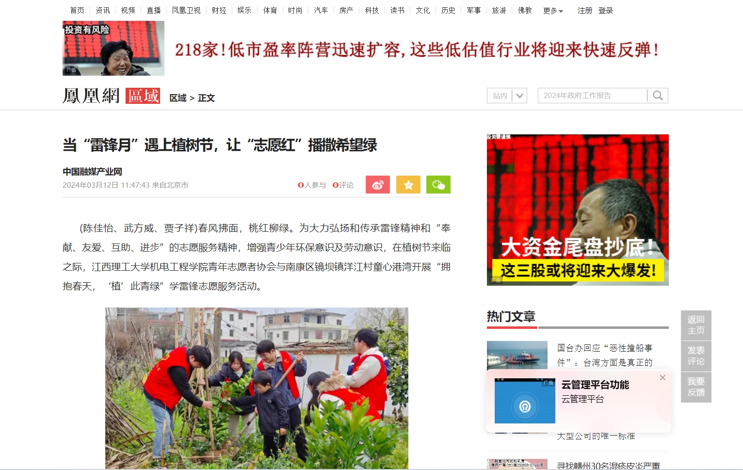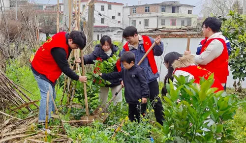 (陈佳怡、武方威、贾子祥)春风拂面,桃红柳绿。为大力弘扬和传承雷锋精神和“奉献、友爱、互助、进步”的志愿服务精神,增强青少年环保意识及劳动意识,在植树节来临之际,江西理工大学机电工程学院青年志愿者协会与南康区镜坝镇洋江村童心港湾开展“拥抱春天,‘植’此青绿”学雷锋志愿服务活动。
