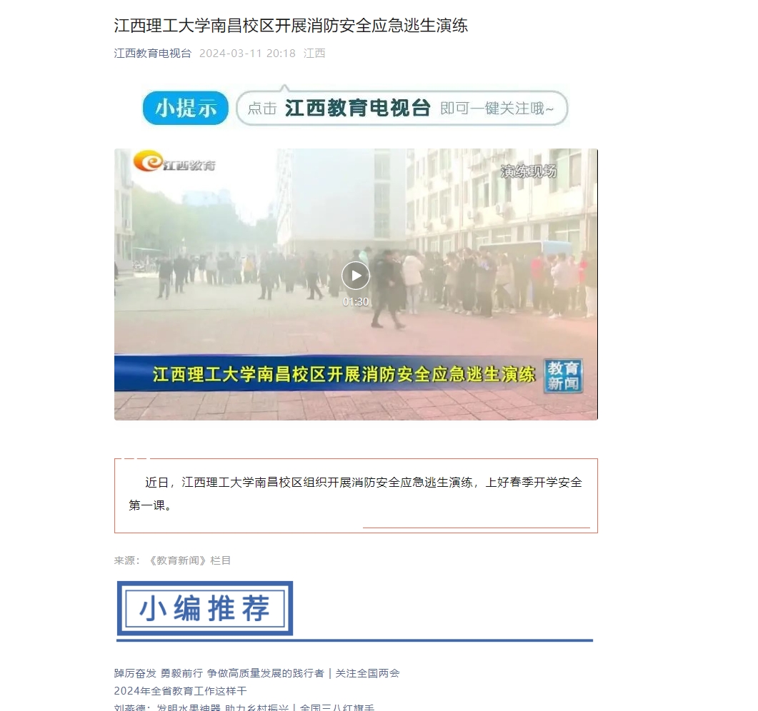 《江西教育电视台》:江西理工大学南昌校区开展消防安全应急逃生演练