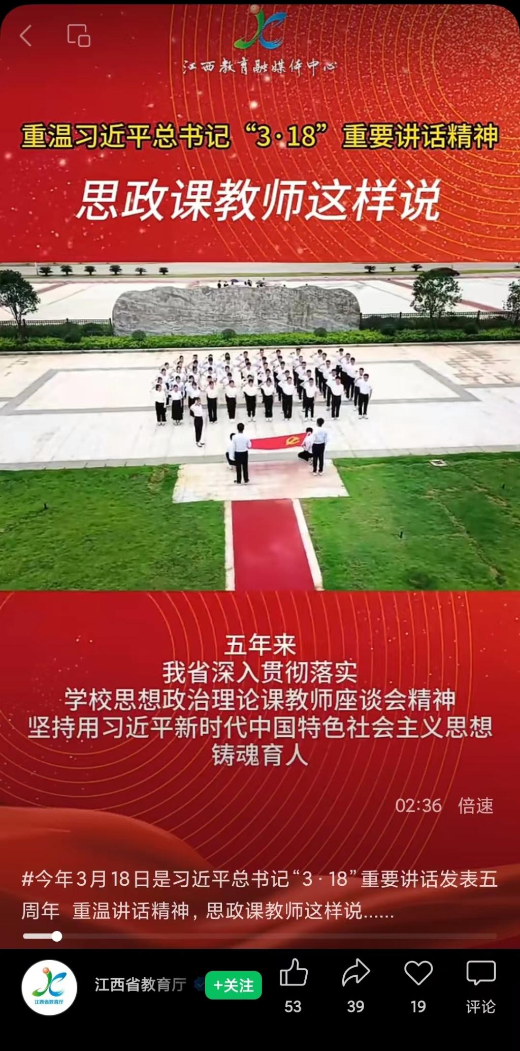 《江西省教育厅视频号》:重温习近平总书记“3·18”重要讲话精神 思政课教师这样说