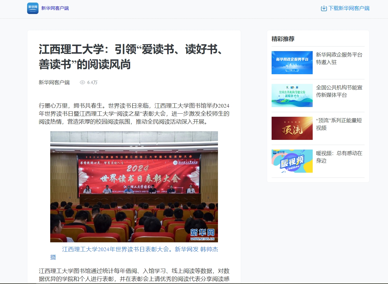江西理工大学2024年世界读书日表彰大会。新华网发 韩帅杰 摄