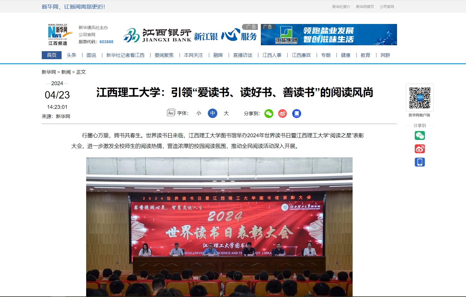 江西理工大学2024年世界读书日表彰大会。新华网发 韩帅杰 摄