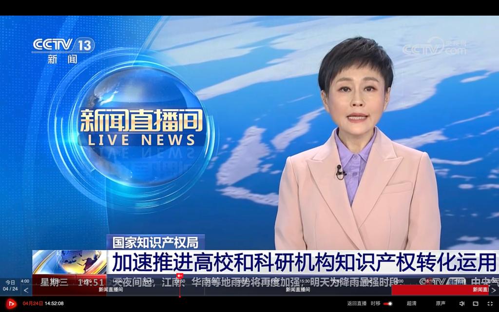 《中央电视台新闻直播间》:[新闻直播间]国家知识产权局 加速推进高校和科研机构知识产权转化运用