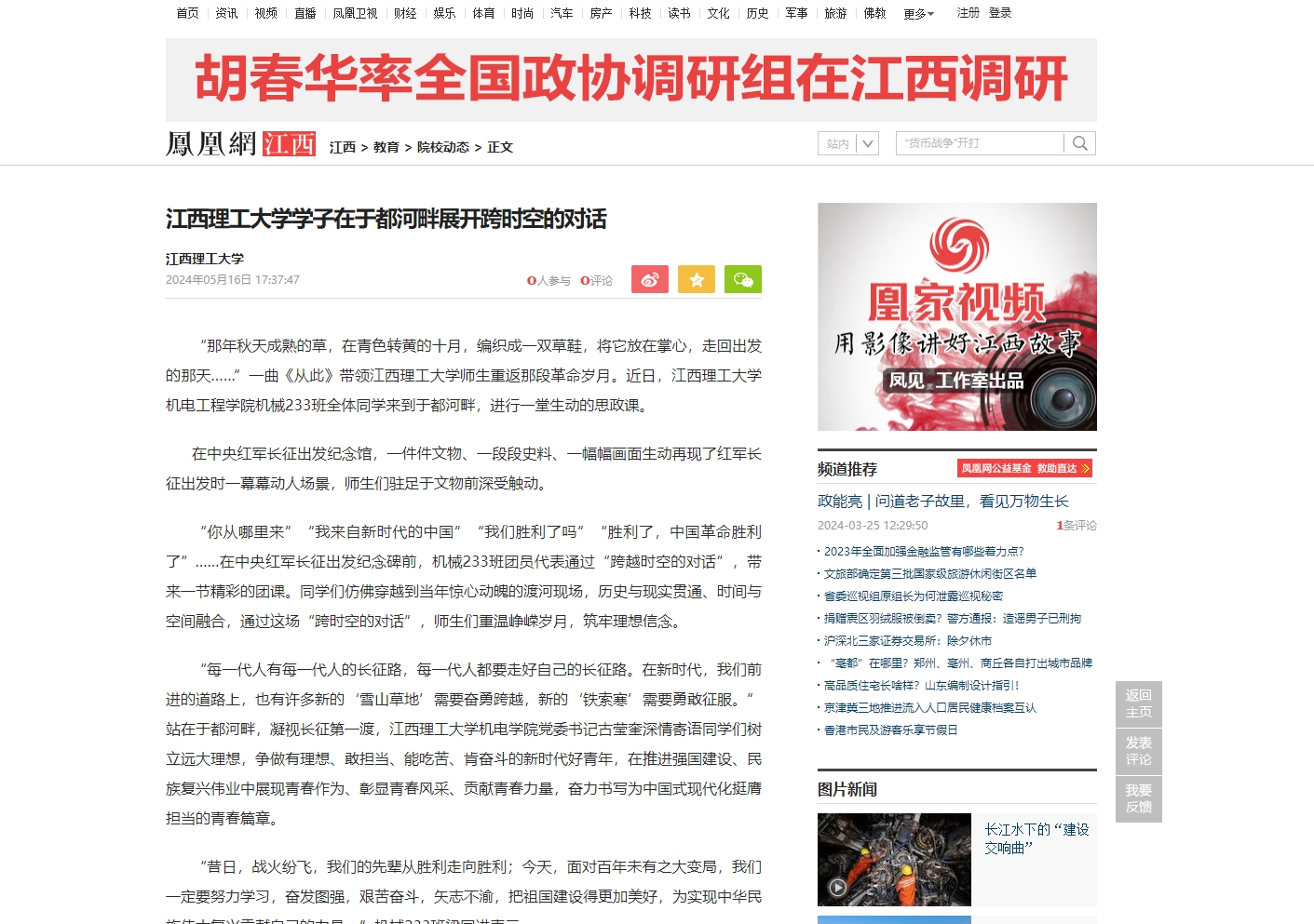 江西理工大学机电工程学院将进一步丰富思政课教学内容和形式,提高学生的学习兴趣和参与度,在春风化雨中充分发挥先烈故事的感召力,让长征精神得到更好发扬和传承,让其中的精神内涵得以永续流传。(于宝添 贾子祥)