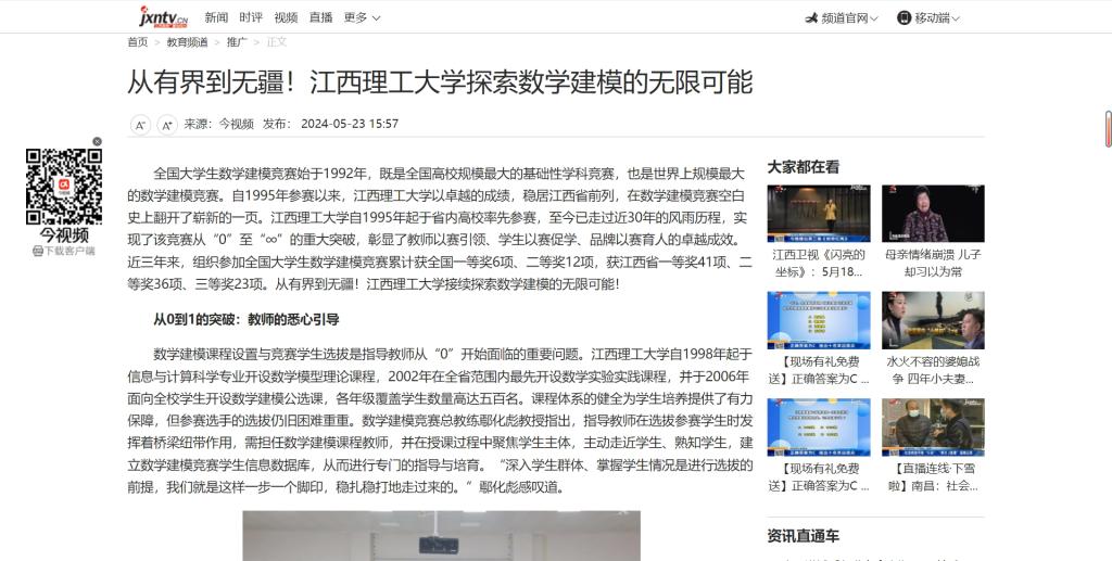 从“1”到“∞”的积累沉淀中,凝练了“夯实数理基础,赋能创新发展”的育人品牌理念与特色,实现了全员、全过程、全方位育人。江西理工大学以数学建模竞赛为有力抓手,不断深耕基础学科研究和教育事业,回归发现问题解决问题的方法本质,夯实学生数理基础,构建学生数理思维,充分发挥服务学校建设作用,着力探索数学建模“有界”到“无疆”无限可能!为教育强国建设不断作出更大贡献。(文/张琼方、唐朝、张鹏 图/梁韵希、钱逸青