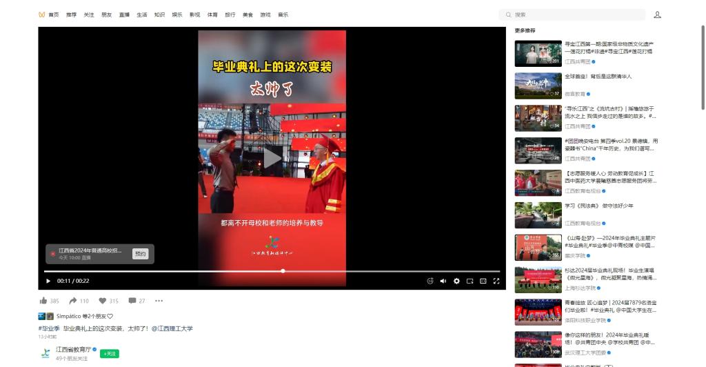 《江西省教育厅视频号》:毕业典礼上的这次变装,太帅了!