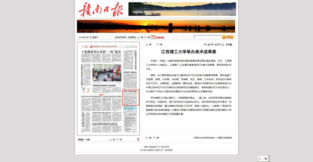 本报讯 (杨琪)为更好地推进党和国家美育政策在高校落实落地,近日,江西理工大学举办“以美润心、以美育人”为主题的美育浸润行动美术成果展,展览持续到6月26日。
