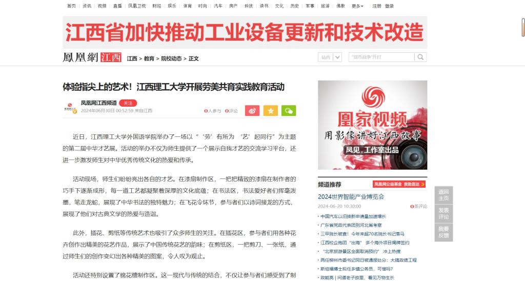 通过劳育与美育的结合,活动极大提升了学生的综合素质和创新能力。江西理工大学外国语学院将持续举办此类活动,让更多学生了解并爱上中华传统文化,培养出更多德智体美劳全面发展的新时代大学生,更好推动中华传统文化的传承与发展。(文/杨梦琪)