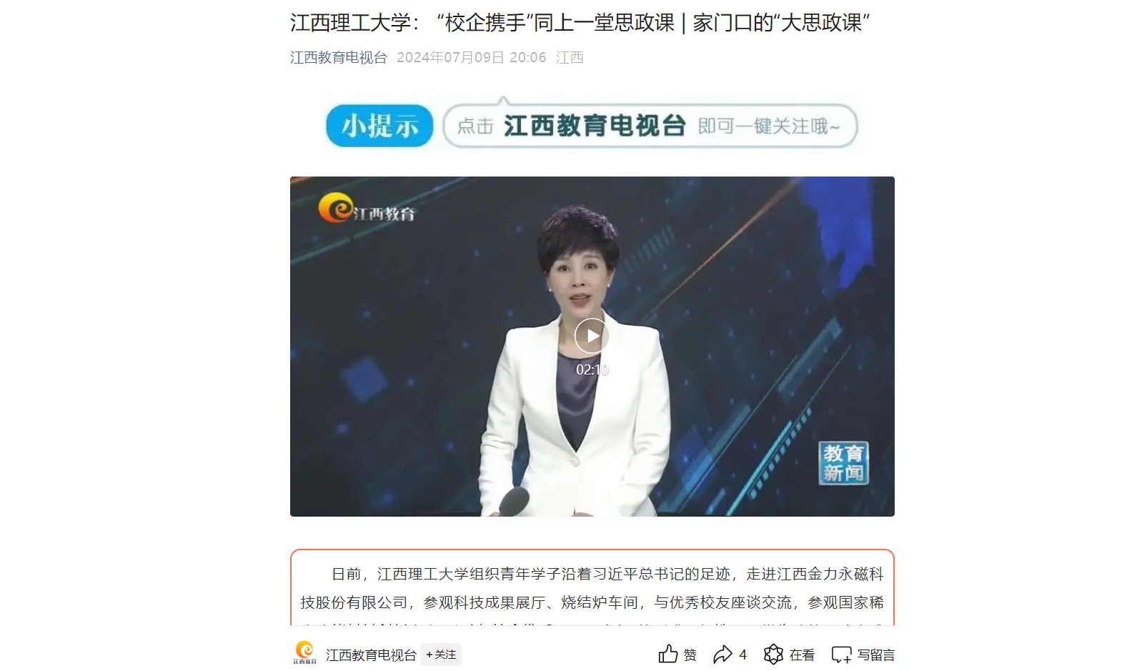 《江西教育电视台》:江西理工大学: “校企携手”同上一堂思政课 | 家门口的“大思政课”
