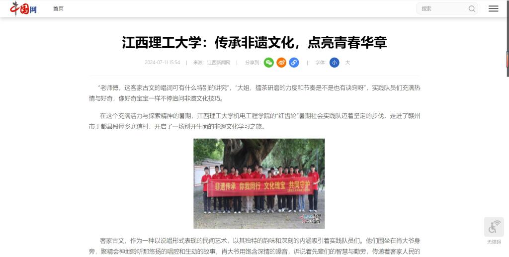 在这个充满活力与探索精神的暑期,江西理工大学机电工程学院的“红齿轮”暑期社会实践队迈着坚定的步伐,走进了赣州市于都县段屋乡寒信村,开启了一场别开生面的非遗文化学习之旅。