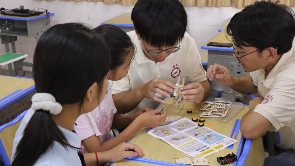 队员们精心设计了多个科技科普小课堂,带领孩子们利用简单的材料,动手制作科技小作品,让孩子们近距离感受科技的魅力。在制作过程中,队员们详细讲解了作品的科学原理和制作过程,帮助孩子们理解科技背后的逻辑。