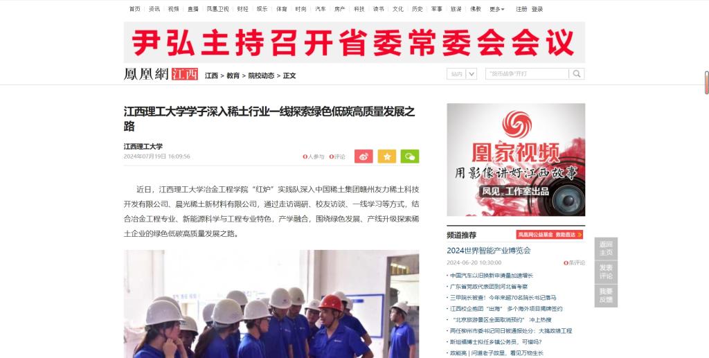 近日,江西理工大学冶金工程学院“红炉”实践队深入中国稀土集团赣州友力稀土科技开发有限公司、晨光稀土新材料有限公司,通过走访调研、校友访谈、一线学习等方式,结合冶金工程专业、新能源科学与工程专业特色,产学融合,围绕绿色发展、产线升级探索稀土企业的绿色低碳高质量发展之路。