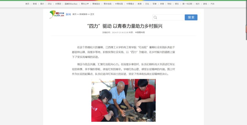 在这个热情似火的暑期,江西理工大学机电工程学院“红齿轮”暑期社会实践队奔赴于都县梓山镇、段屋乡等地,积极投身社会实践,以“四力”为驱动,在乡村振兴的道路上留下了坚实而璀璨的足迹。