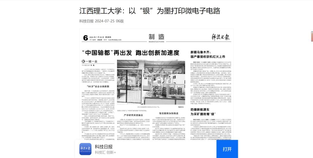 《科技日报》:江西理工大学:以“银”为墨打印微电子电路
