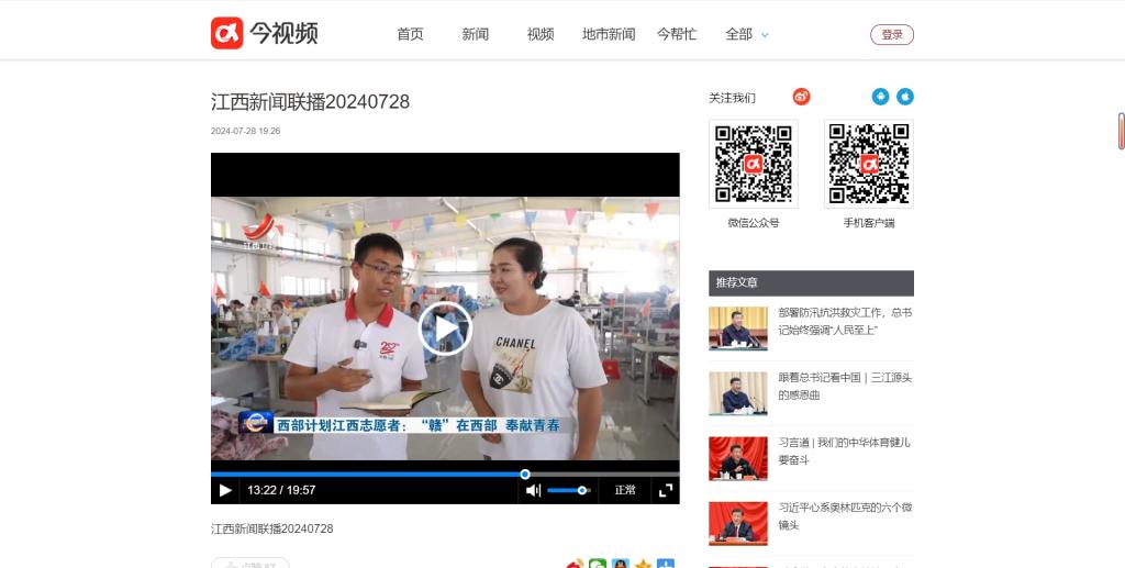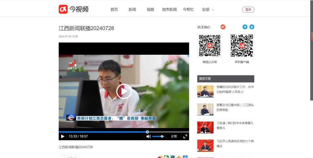 《江西广播电视台官方客户端》:江西新闻联播报道23届毕业生刘国通西部计划志愿者的事迹