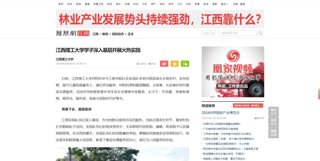 日前,江西理工大学材料科学与工程学院社会实践队来到兴国县埠头乡程水村,走向田野、留守儿童和孤寡老人,通过劳动服务、材料科普和教授舞蹈、太极拳,扎实做好农村基层志愿服务,活动引导和帮助青年学生在社会课堂中受教育、长才干、作贡献,争做有理想、敢担当、能吃苦、肯奋斗的新时代好青年。