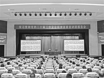 八月二十一日上午,学习贯彻党的二十届三中全会精神省委宣讲团宣讲报告会在萍乡市举行。 本报全媒体记者 陈记昌摄