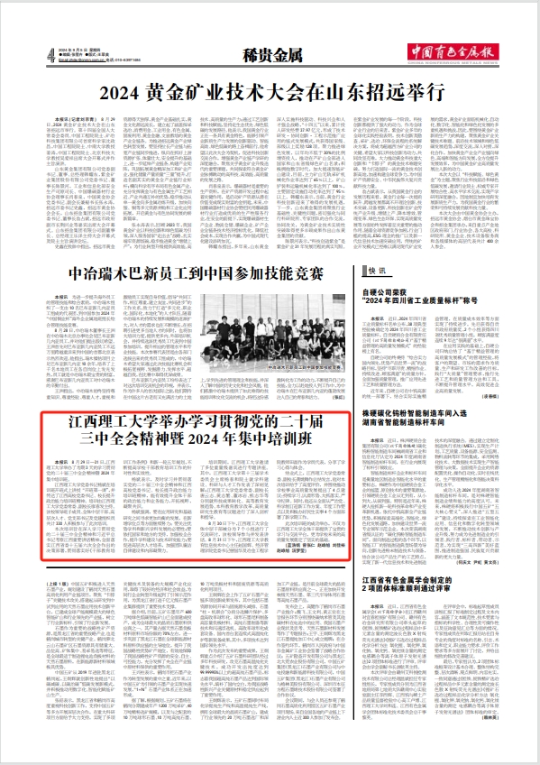 8月29日—31日,江西理工大学举办了为期3天的学习贯彻党的二十届三中全会精神暨2024年集中培训班。