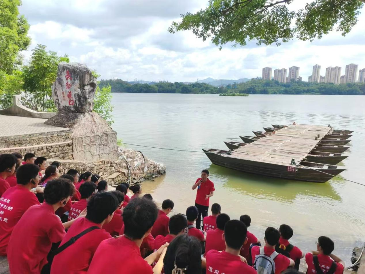在中央红军长征出发地旧址于都县城东门渡口,于都县委党校的老师们为师生带来了《于都河畔寻初心—长征源头再出发》现场教学,深情朗诵了由抗战巾帼英雄唐义贞的外孙、江西理工大学退休赖章盛教授谱写的《于都河》,充分展示了于都儿女冲锋在前的英勇无畏精神。