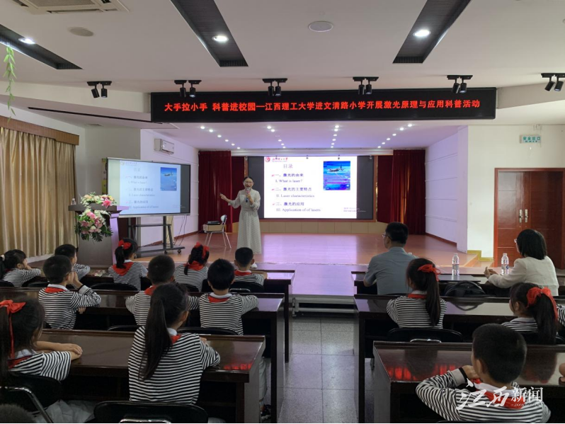 激光是20世纪以来继核能、电脑、半导体之后,人类重大发明之一,被称为“最快的刀”“最准的尺”“最亮的光”。在激光科普讲座中,江西理工大学信息工程学院光电信息科学与工程教研室教师霍良通过生动的案例、图片和视频,带领同学们进行了一次难忘的“激光之旅”。据悉,本次活动还设置了互动环节,让同学们积极参与其中,现场气氛热烈,大家踊跃发言,热情高涨。最后,文清路小学教师涂倩对科普活动进行总结,真挚表达了对江西理工大学信息工程学院领导、老师的感谢与支持。