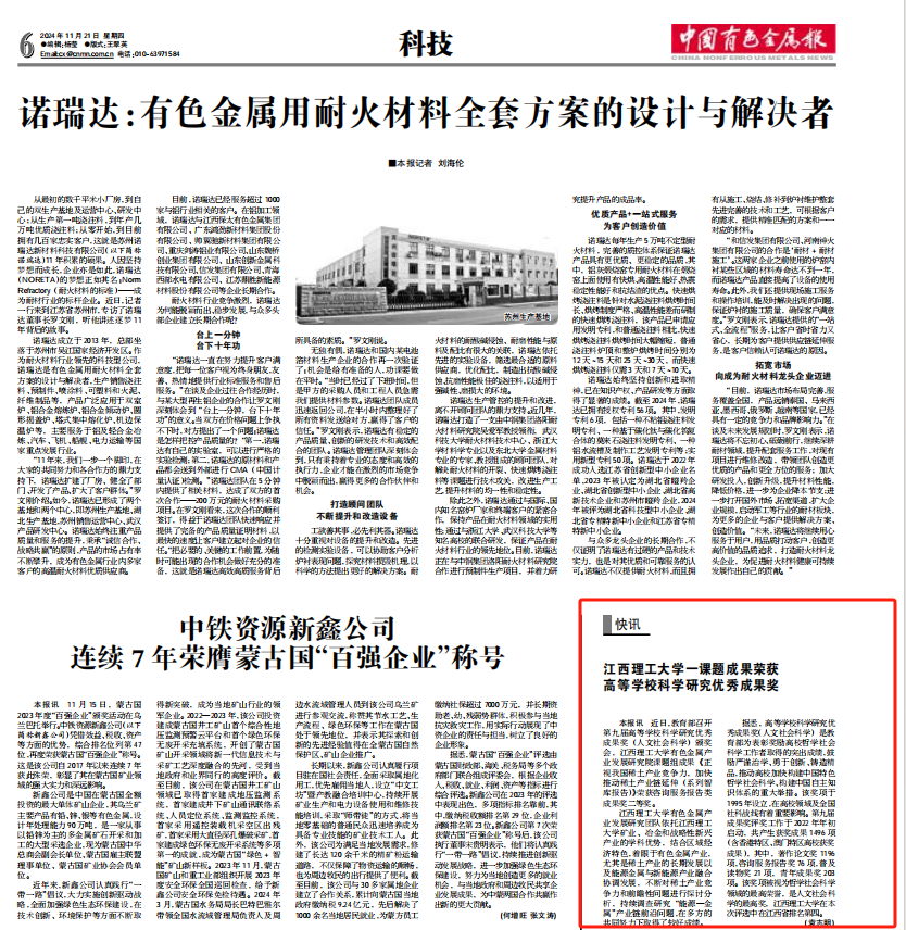 本报讯 近日,教育部召开第九届高等学校科学研究优秀成果奖(人文社会科学)颁奖会,江西理工大学有色金属产业发展研究院课题组成果《正视我国稀土产业竞争力,加快推动稀土产业链延伸 (系列智库报告)》荣获咨询服务报告类成果奖二等奖。
