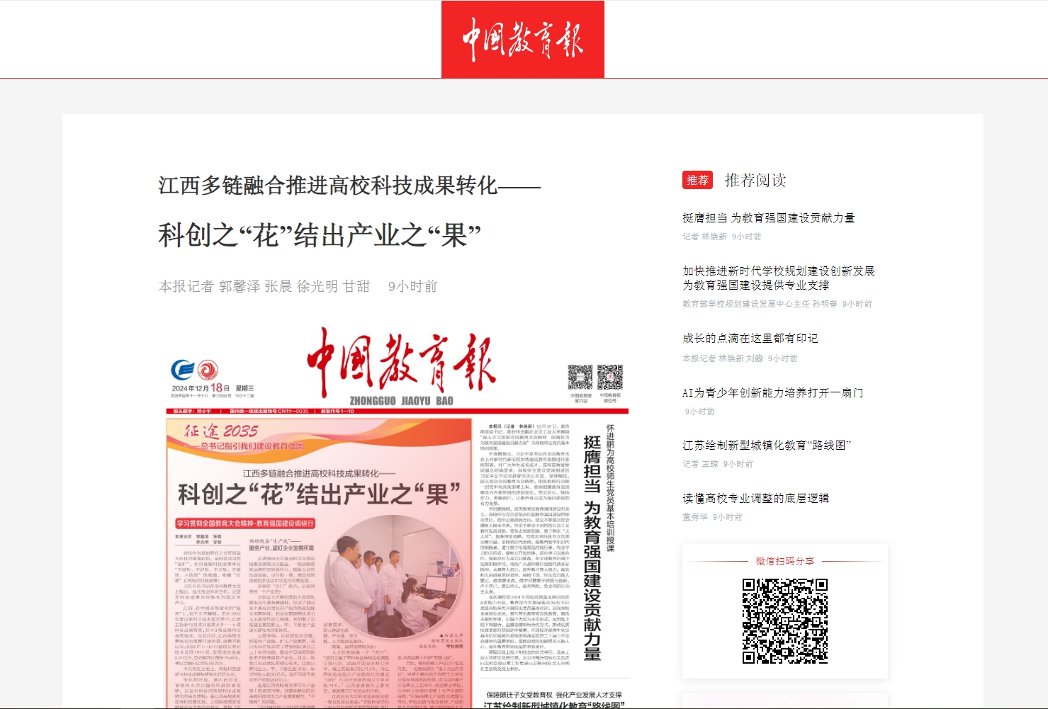 江西省委教育工委、省教育厅高度重视,全面落实省委、省政府部署要求,深入推动创新链、产业链、资金链、人才链深度融合。