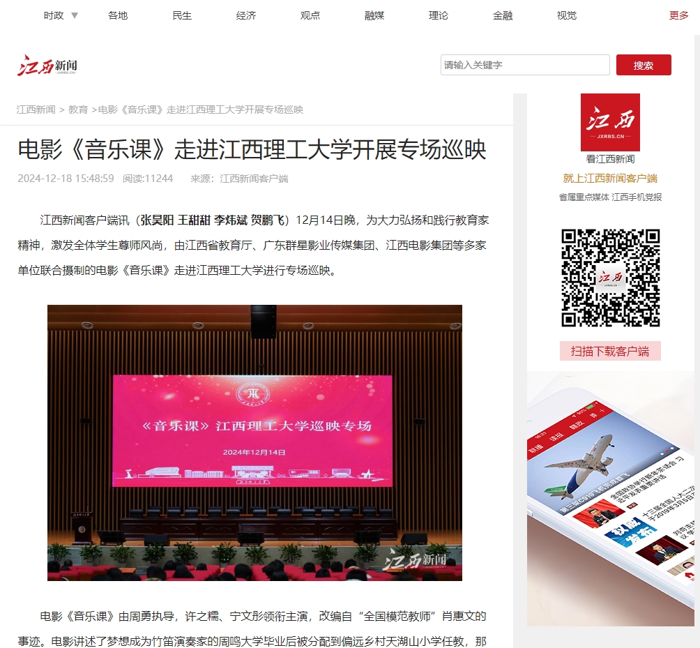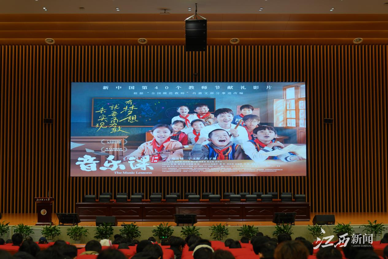 12月14日晚,为大力弘扬和践行教育家精神,激发全体学生尊师风尚,由江西省教育厅、广东群星影业传媒集团、江西电影集团等多家单位联合摄制的电影《音乐课》走进江西理工大学进行专场巡映。