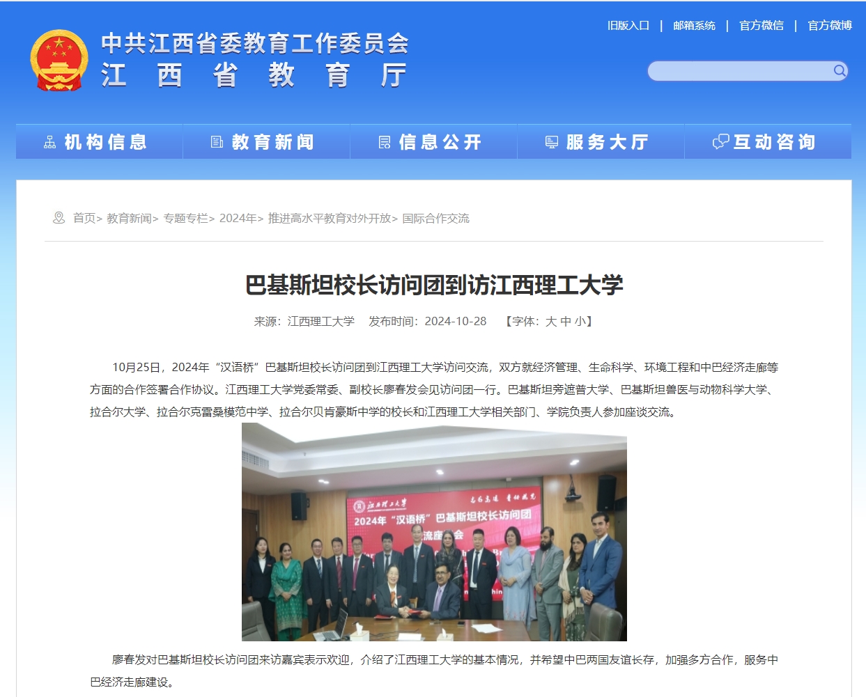 《江西省教育厅》:巴基斯坦校长访问团到访江西理工大学
