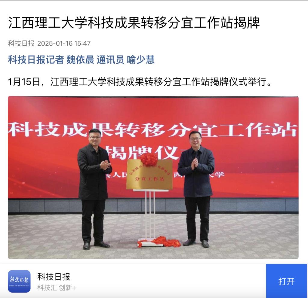《科技日报》:江西理工大学科技成果转移分宜工作站揭牌