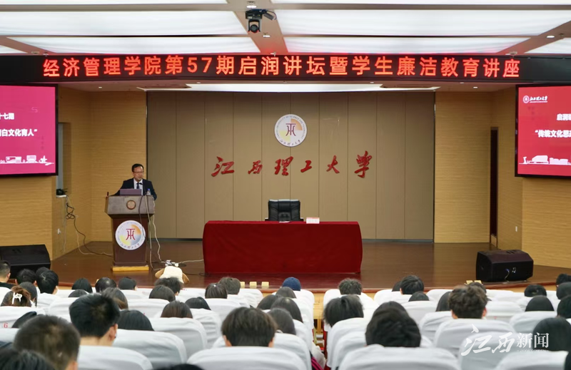 徐小军以赣南文化研究者的独特视角,聚焦“清白做人、清白传家、清白从政”,系统阐释了“清白文化”丰富的道德内涵,构建起“修身齐家治国”的三维阐释体系。通过多媒体呈现赣南古建筑的楹联匾额、廉泉书院遗址等文化地标,现场解读明代《虔州府志》廉政典故,带领学生破译蕴藏在飞檐黛瓦间的廉洁密码。