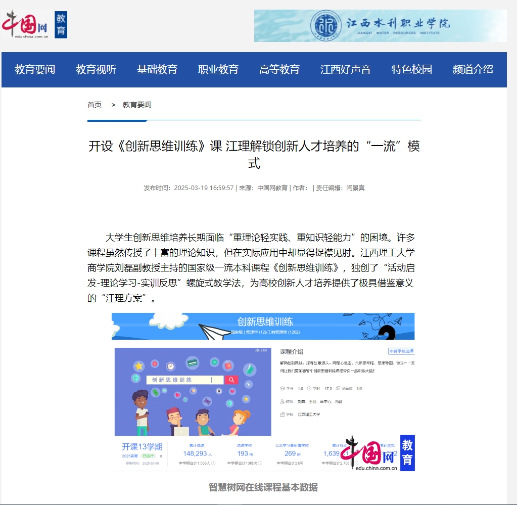 在跨校共享方面,课程目前已服务南昌大学等186所高校,累计选课14.68万人次。通过跨校共享,课程将江西理工大学的创新教育理念和方法传播到全国,为更多高校的创新人才培养提供了有益借鉴。