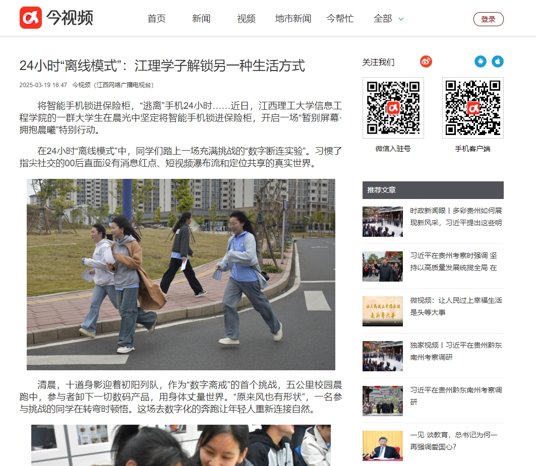 将智能手机锁进保险柜,“逃离”手机24小时……近日,江西理工大学信息工程学院的一群大学生在晨光中坚定将智能手机锁进保险柜,开启一场“暂别屏幕·拥抱晨曦”特别行动。