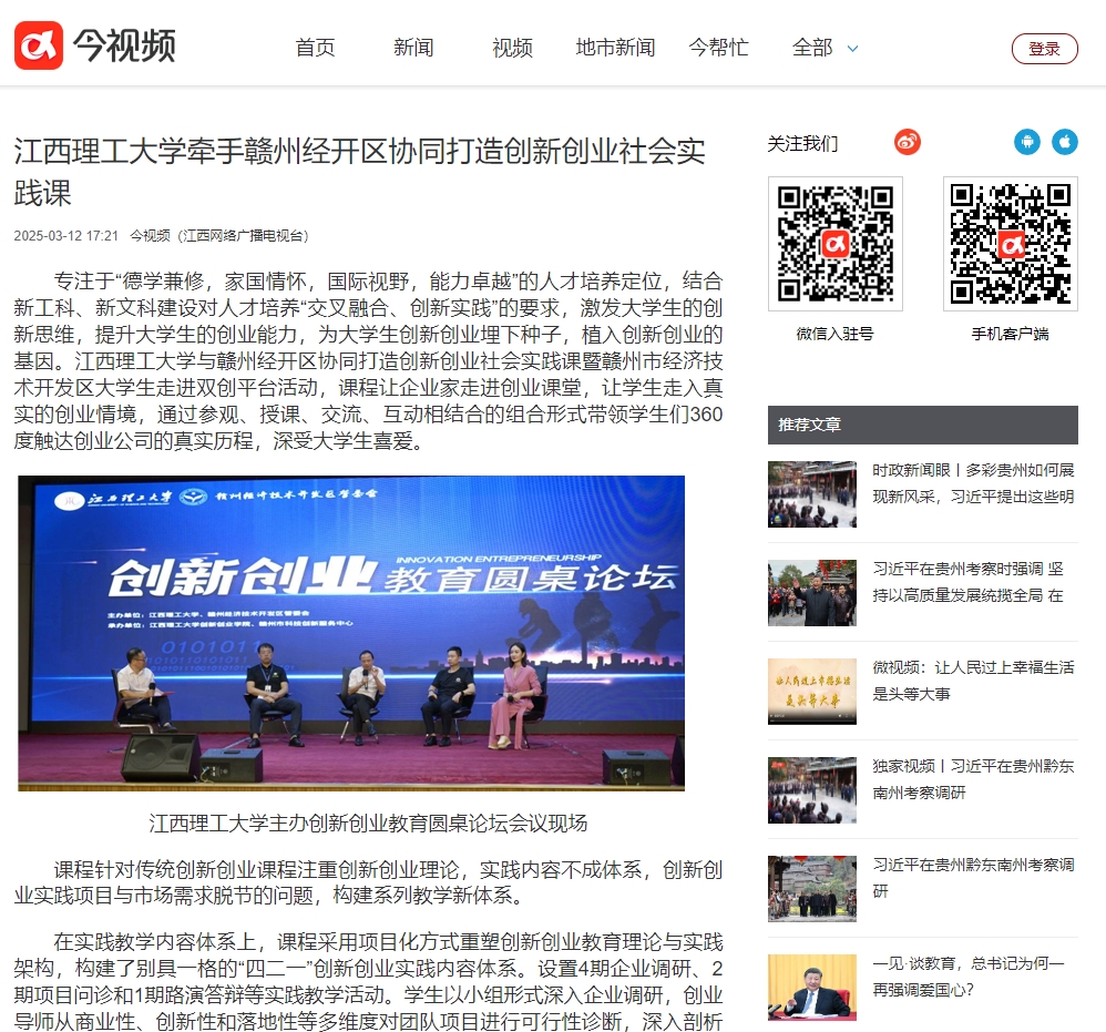 江西理工大学与赣州经开区协同打造的创新创业社会实践课,为学生提供创新创业广阔平台,为地方经济发展增添新动力,为培养新时代创新创业人才积累宝贵经验,在全国范围内具有重要的推广借鉴价值。(图文 刘磊)