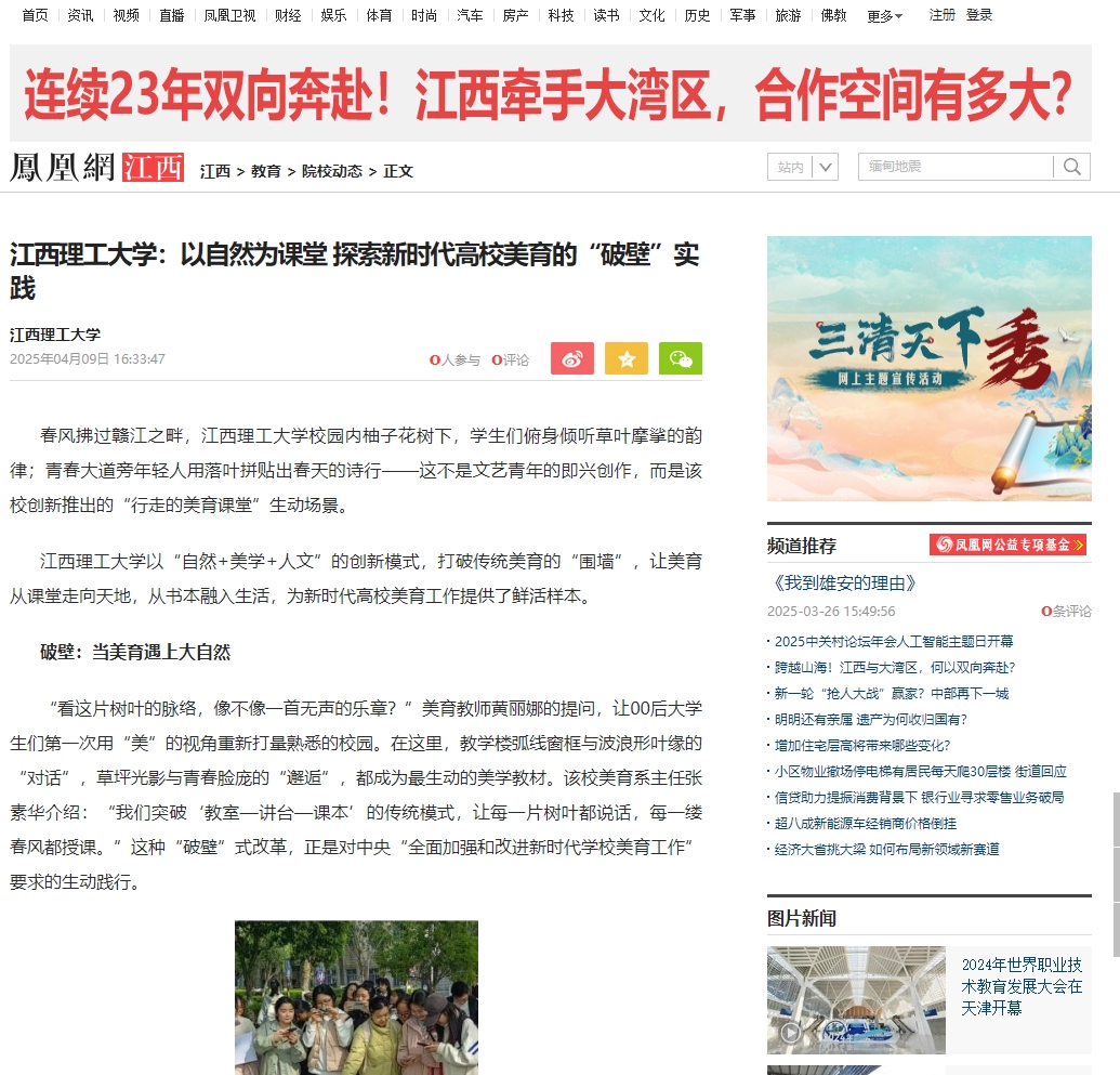 江西理工大学以“自然+美学+人文”的创新模式,打破传统美育的“围墙”,让美育从课堂走向天地,从书本融入生活,为新时代高校美育工作提供了鲜活样本。