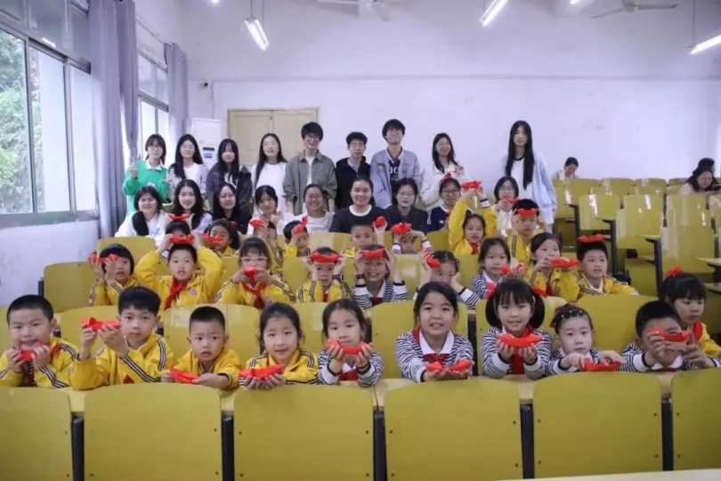 江西理工大学外国语学院充分挖掘赣南非遗资源,将剪纸、皮影、折纸等传统技艺转化为红色文化传播的“活教材”,让青年学生在动手实践中触摸历史温度。学院汉语国际教育专业学生组建了“非遗工坊”,将非遗传承纳入实践教学体系,开发“非遗+红色文化”双语教学方案。引导学生们深入瑞金、兴国等地采风,将“八子参军”“长征第一渡”等红色故事转化为可操作的非遗创作教程。学院还组织学生们走进赣州中小学及社区,开设“非遗里的红色课堂”,让“看红色故事”变为“做红色记忆”,推动非遗技艺成为青年学子传承红色记忆的“活态载体”。
