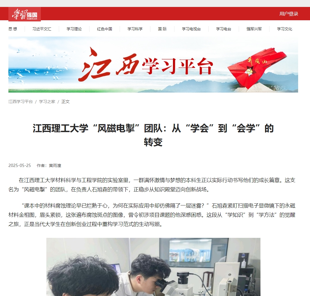 在江西理工大学材料科学与工程学院的实验室里,一群满怀激情与梦想的本科生正以实际行动书写他们的成长篇章。这支名为“风磁电掣”的团队,在负责人石旭森的带领下,正稳步从知识殿堂迈向创新战场。