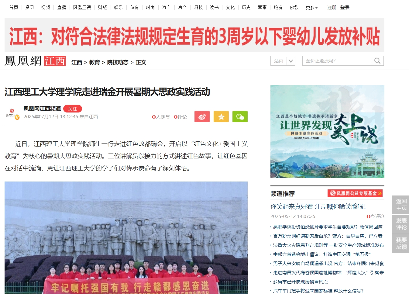 近日,江西理工大学理学院师生一行走进红色故都瑞金,开启以“红色文化+爱国主义教育”为核心的暑期大思政实践活动。三位讲解员以接力的方式讲述红色故事,让红色基因在对话中流淌,更让江西理工大学的学子们对传承使命有了深刻体悟。