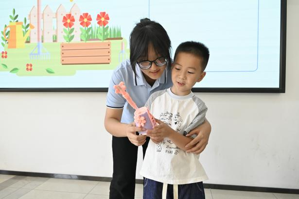 在充满欢声笑语的手工区,孩子们变身“小小建筑师”,专注的神情中透着对创造的渴望。“我的房子有三个‘大鼻子’,肯定特别凉快!”“我给屋顶装了太阳能板,这样就不用交电费啦!”小朋友们一边制作,一边热烈地分享着自己天马行空的节能创意,清脆的童声在教室里回荡。
