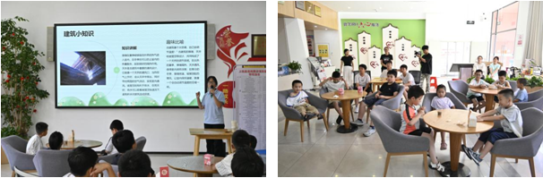 讲到厚墙时,刘晓晓用棉花糖和薄饼干比喻厚墙与薄墙,“厚墙就像厚厚的棉花糖,夏天把热气挡在外面,冬天把温暖留在家里!”生动的比喻让孩子们笑得前仰后合。说到天井,队员模仿热空气“呼呼”上升的样子,“天井是房子的小鼻子,能帮房子呼吸,把热空气呼出去!”小朋友们也跟着摇头晃脑,模仿空气流动的样子,现场气氛热烈非凡。