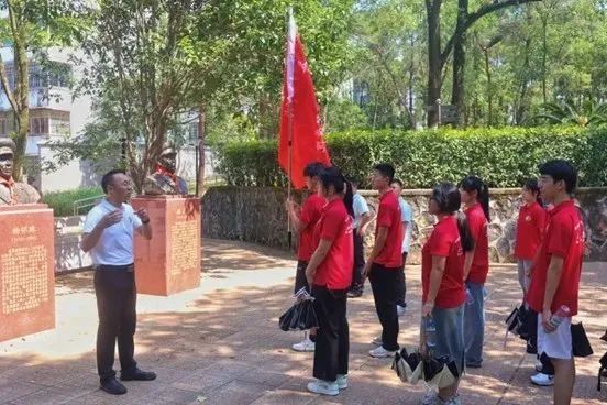 “聚能环”社会实践服务队走进吉安县将军公园。江西理工大学能源与机械工程学院党委书记饶先发以吉安县开国将军的光辉事迹为教材,现场讲述将军们艰苦卓绝的奋斗历程。队员们驻足将军塑像前,凝视历史印记,深刻感悟革命先辈为民族解放建立的卓越功勋,经历了一次深刻的理想信念洗礼。