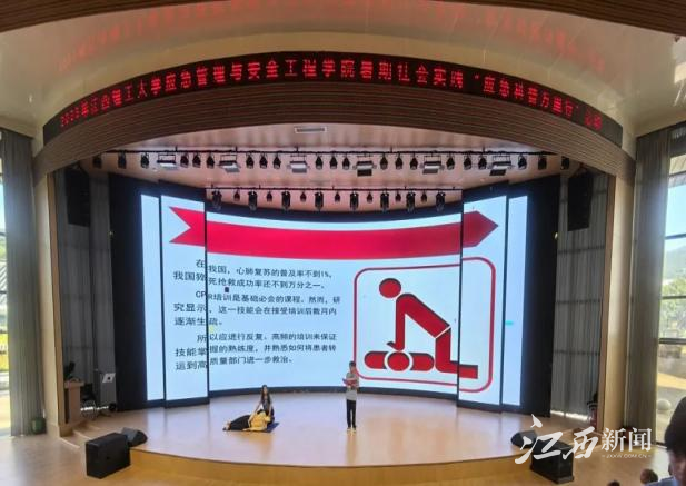 实践队在会昌县洞头乡畲族村,借助省级非物质文化遗产“摆字龙”演绎消防安全口诀,讲解防火要点,让传统图腾成为应急科普的生动载体;编排应急安全“三句半”,用朗朗上口的语言普及防灾常识;现场开展心肺复苏教学,结合畲族村落实际情况,重点讲解“黄金四分钟”急救原则;结合客家谚语设计互动内容,利用“榕树落叶堆满地,台风快来关窗扉”等顺口溜科普灾害预警。这种“文化浸润式”科普,有效提升了乡村居民的应急素养。