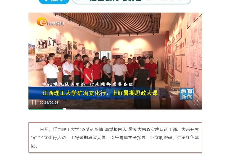 《江西教育电视台》:江西理工大学矿冶文化行:上好暑期思政大课 | 牢记嘱托强国有我 行走赣鄱感恩奋进
