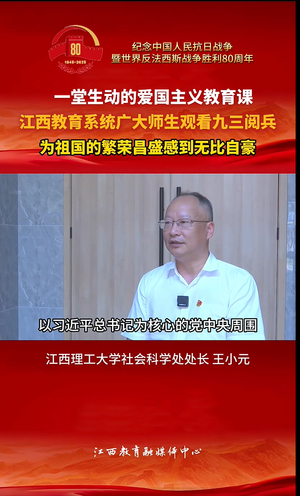 《江西教育融媒体中心》:江西教育系统广大师生观看九三阅兵 为祖国的繁荣昌盛感到无比自豪!