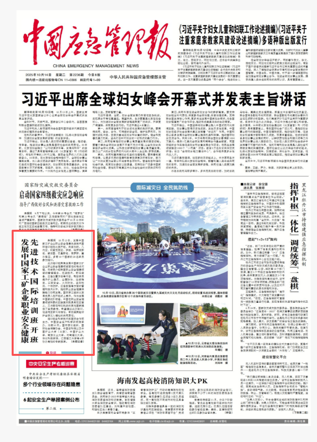 《中国应急管理报》:发展中国家工矿企业职业安全健康先进技术国际培训班开班