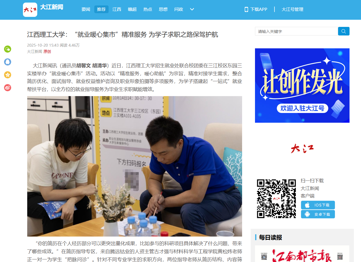 江西理工大学招生就业处处长邓晓宇表示,学校将以此次活动为契机,持续深化就业服务内涵,围绕学生求职全流程,推出更多针对性强、实效性高的就业帮扶活动,同时加强与企业、行业的合作联动,为学生搭建更广阔的就业平台,助力毕业生高质量就业,真正把就业服务做到学生心坎上。